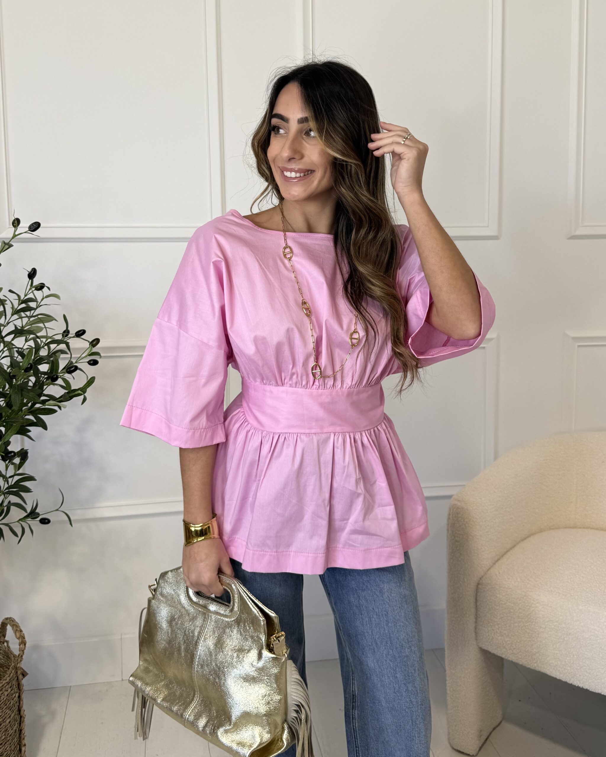 La Blouse TINA femme se prête à de nombreux looks. Par exemple, vous pouvez l’associer avec notre jean VANILLE pour un combo lumineux et tendance. Ce contraste de couleurs crée une silhouette fraîche et moderne.