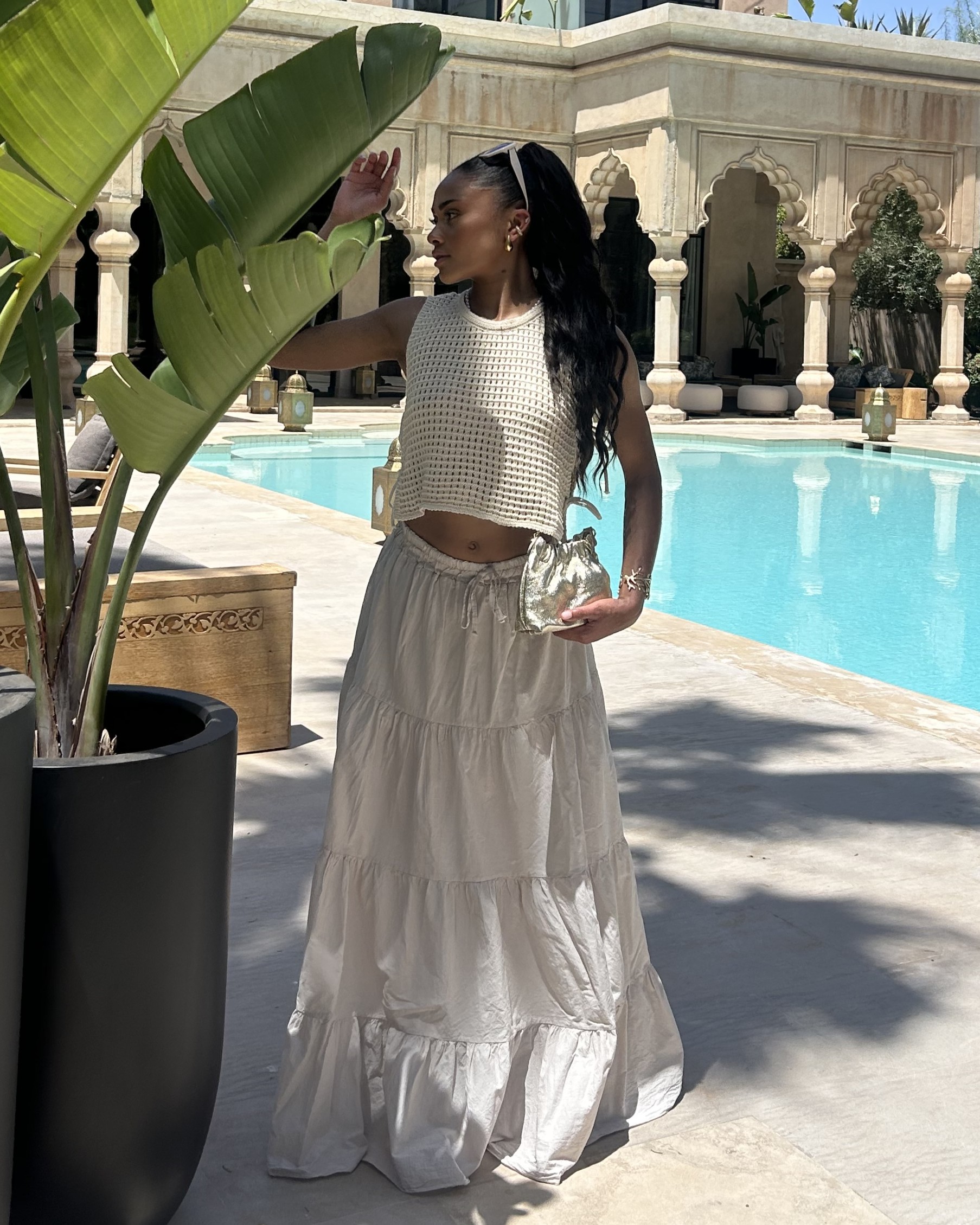 Pour une version plus habillée, optez pour une blouse fluide ou une chemise rentrée à la taille. Ainsi, cette jupe longue tendance s’adapte à toutes les occasions : journée en ville, vacances, brunch ou soirée chill.