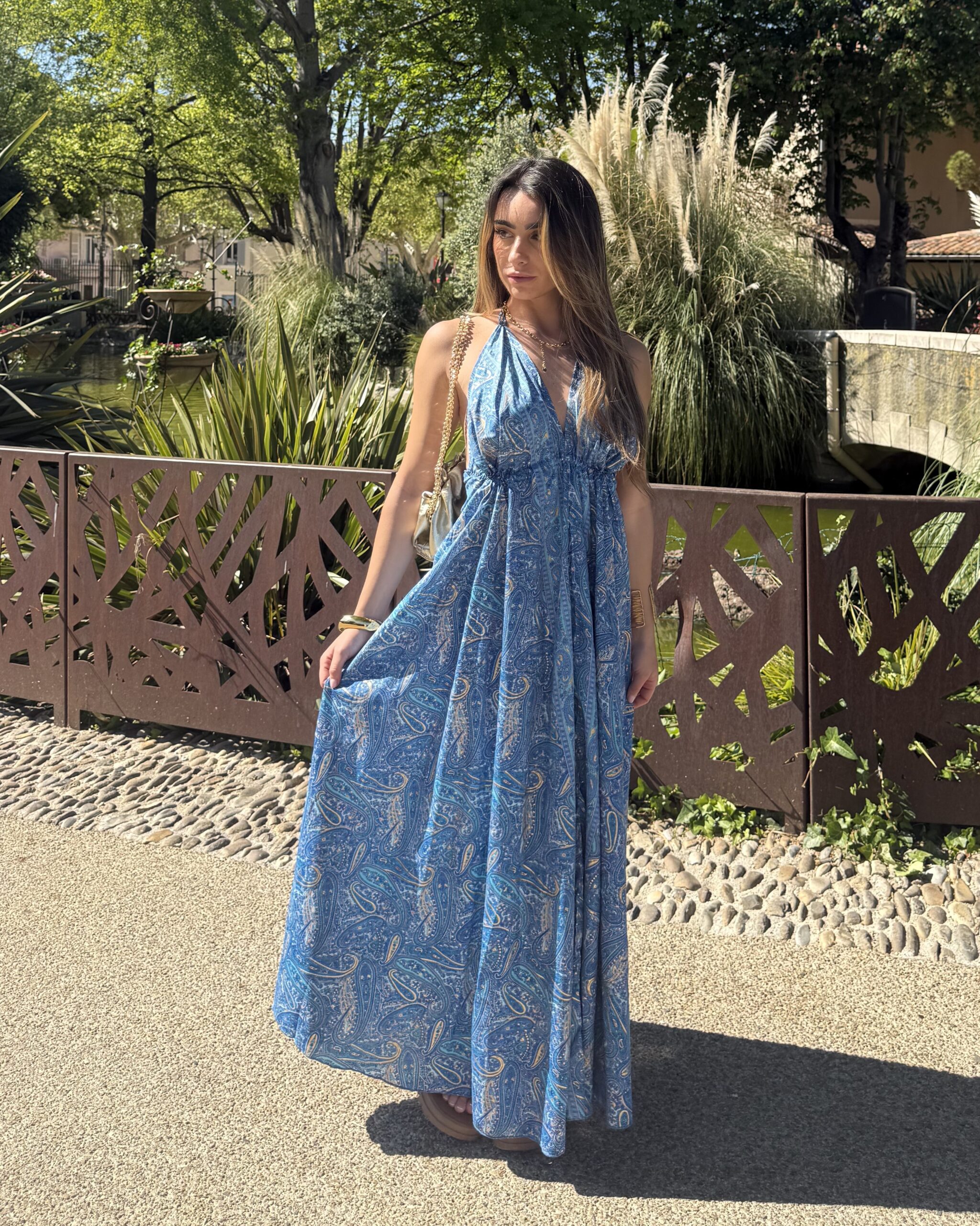 • Tendance bohème : une robe longue et fluide, idéale pour un look romantique et moderne.
