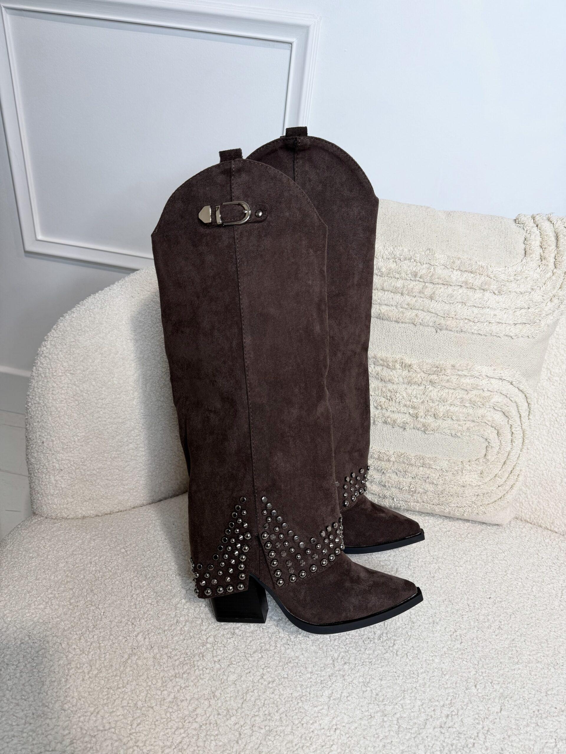 - Bottes santiags chocolat simili daim brodée