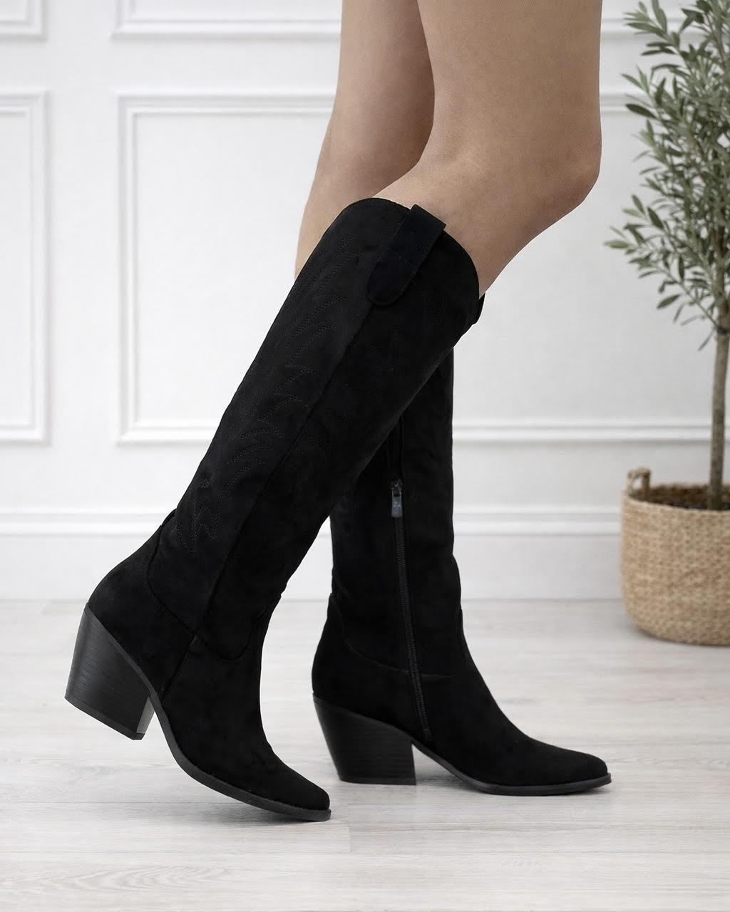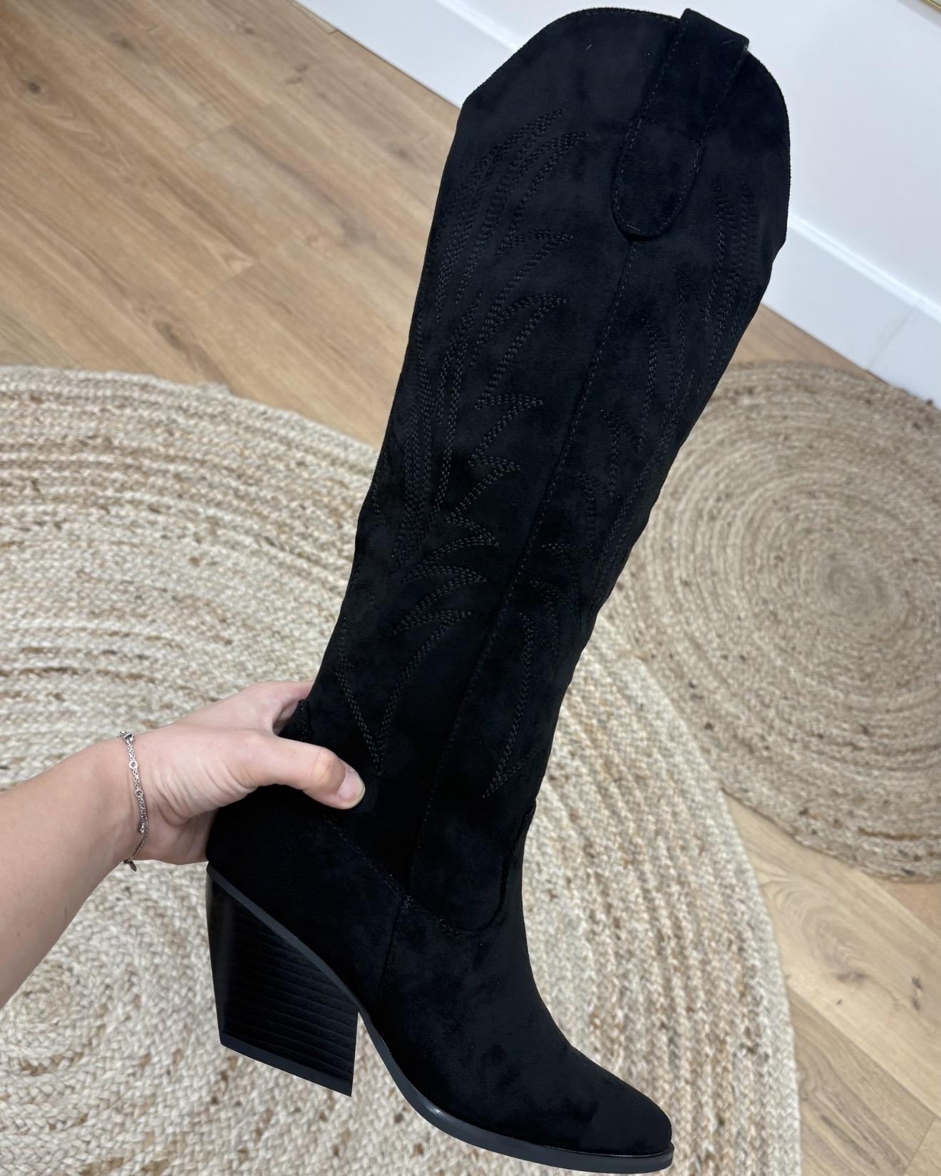 • Bottes santiags noir simili daim brodée