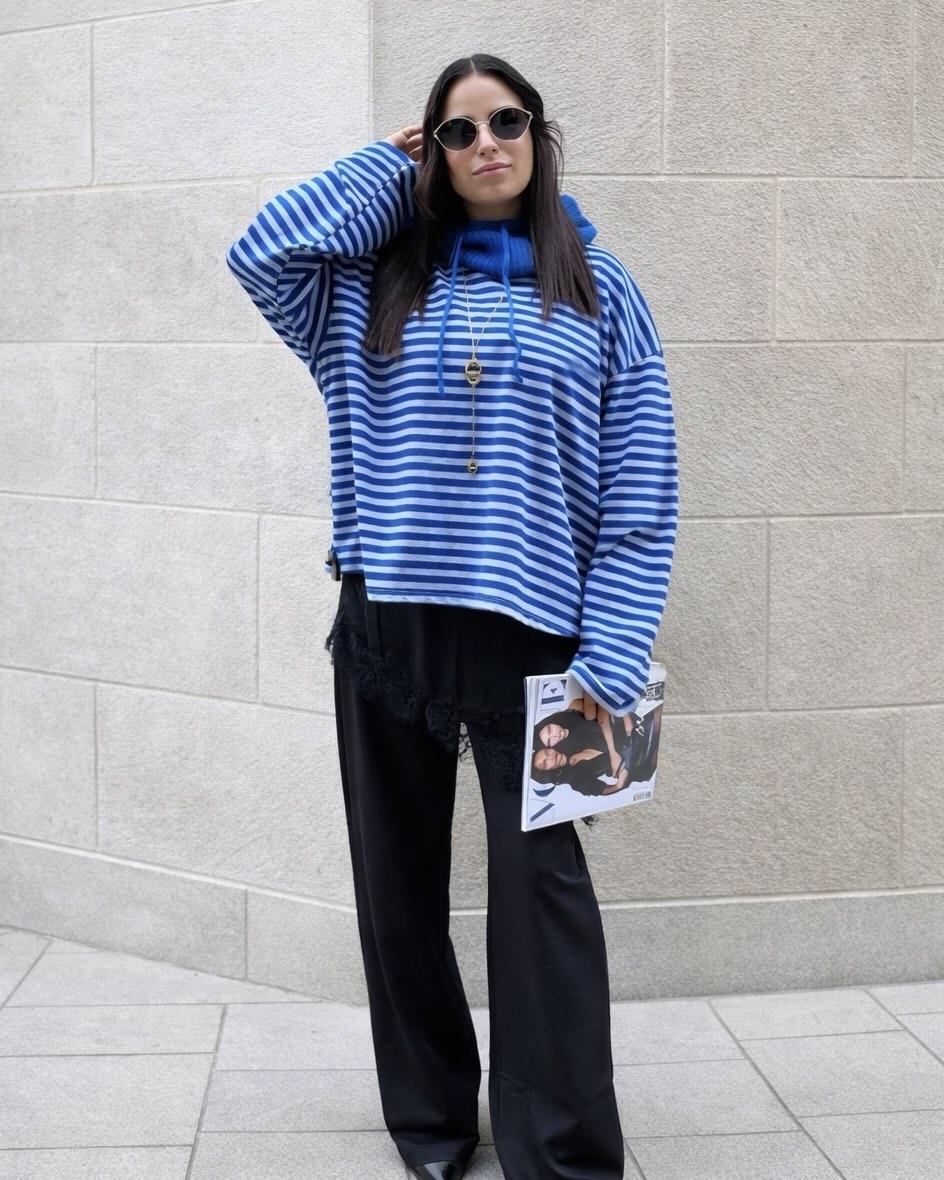 De plus, ses rayures apportent de la couleur tout en restant faciles à assortir. C’est le genre de haut qu’on aime enfiler quand on veut être à l’aise tout en gardant une allure soignée et tendance.