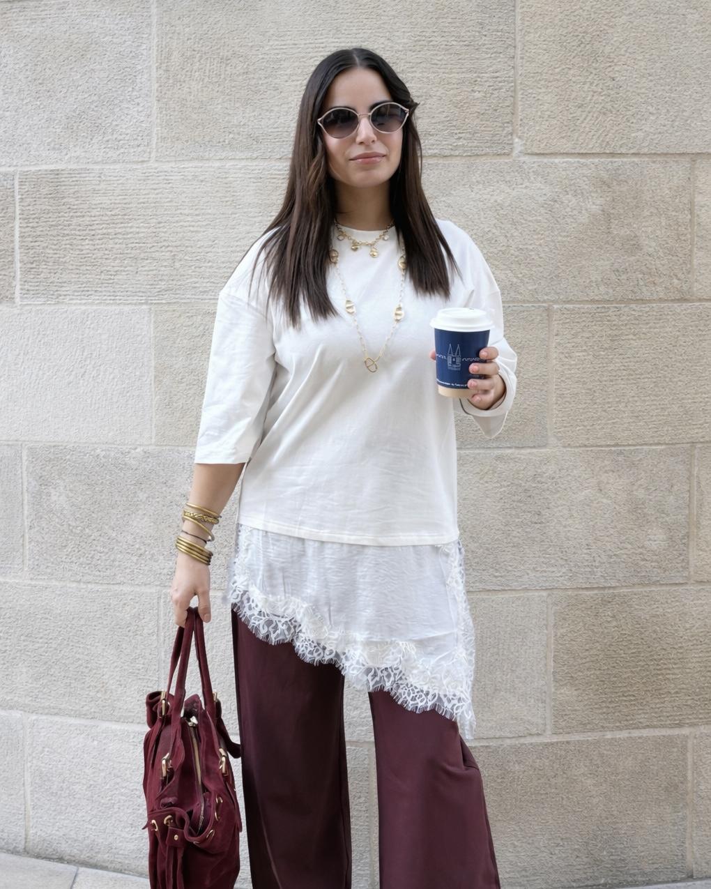 Pour un look encore plus tendance, portez-le sous un pull ou un sweat. Ainsi, la dentelle qui dépasse légèrement crée un effet de superposition très mode qu’on voit beaucoup en ce moment. C’est le petit détail qui fait toute la différence et qui donne tout de suite du style à une tenue simple.
